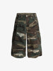 • Design Elements: Distressed patches with zigzag stitching, camouflage pattern, multiple functional pockets
