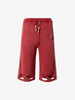 • Design Elements: Distressed holes at the bottom hem, two rear pockets, elastic waistband