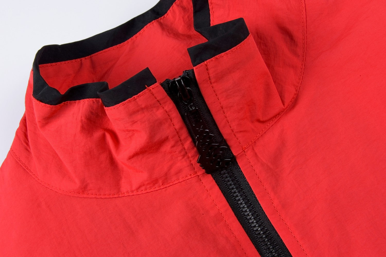 Vintage Nylon Jacket with contrast panels, and piping on collar. Features elastic cuff and waistband. Soft Tercel lining. Embroidery detailing.