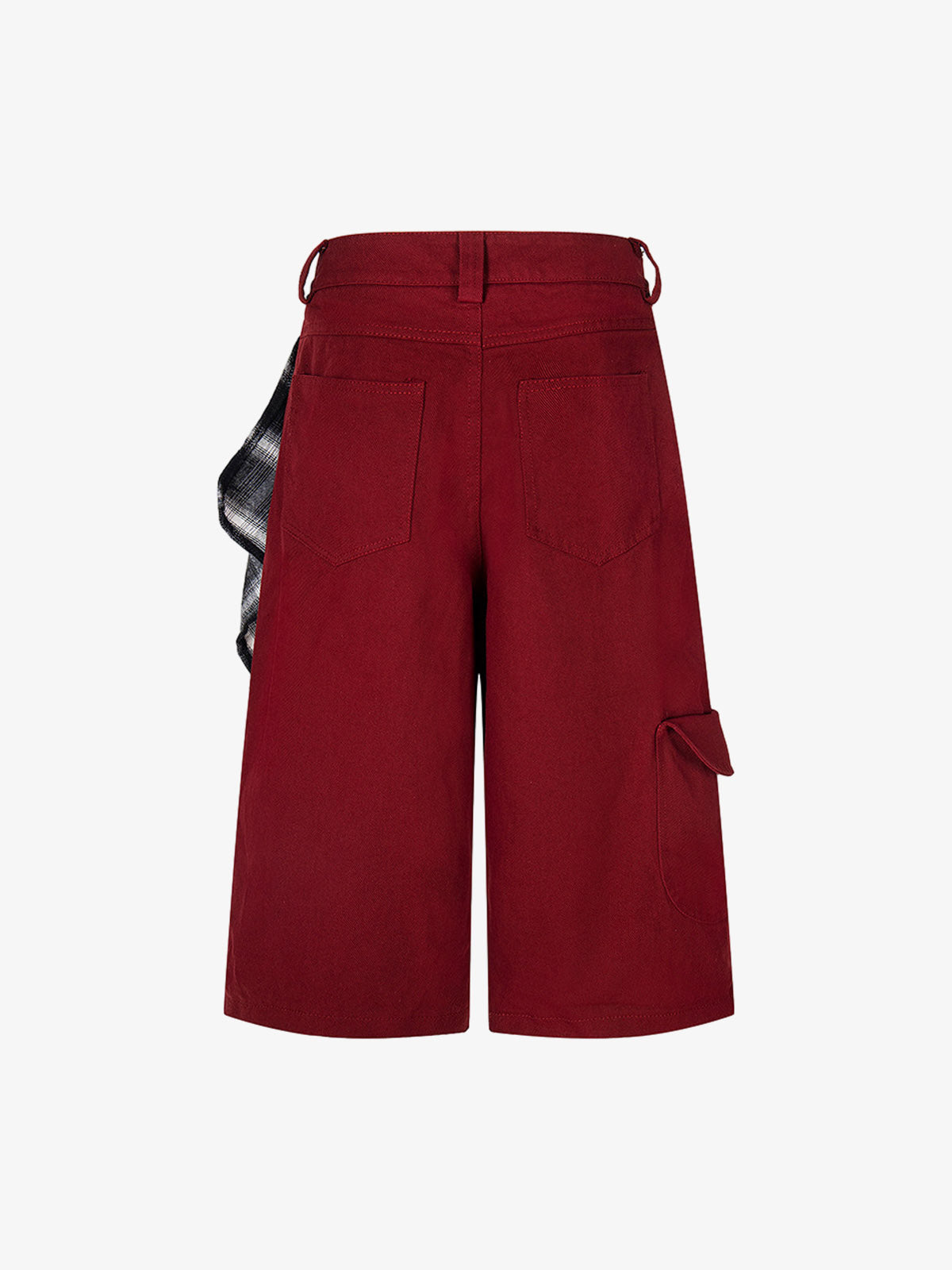 • Design Elements: Asymmetric plaid patch design, side pockets, distinctive stitching lines