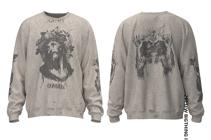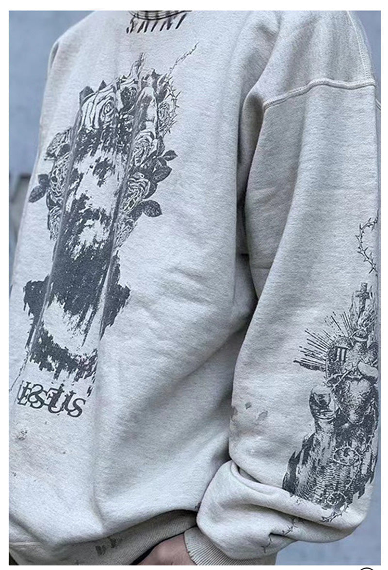 SAINT MICHAEL Graffiti print plus velvet Sweatshirts