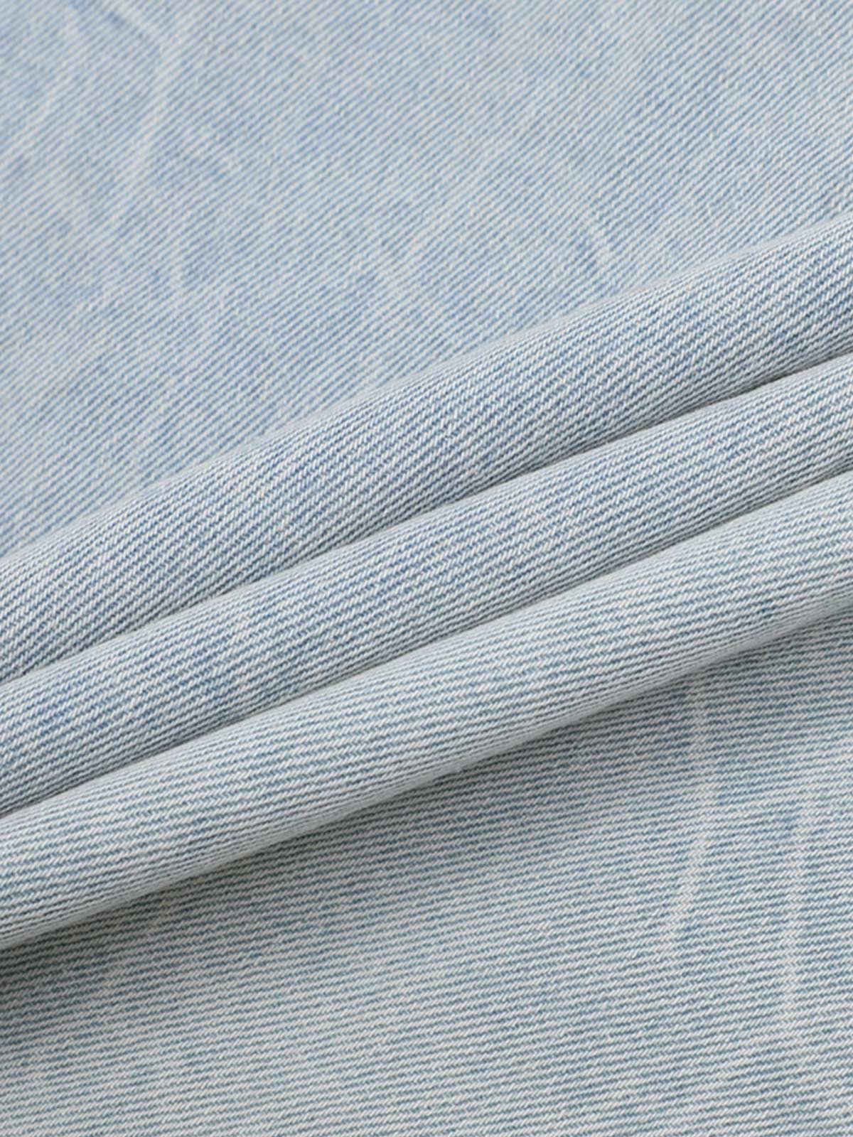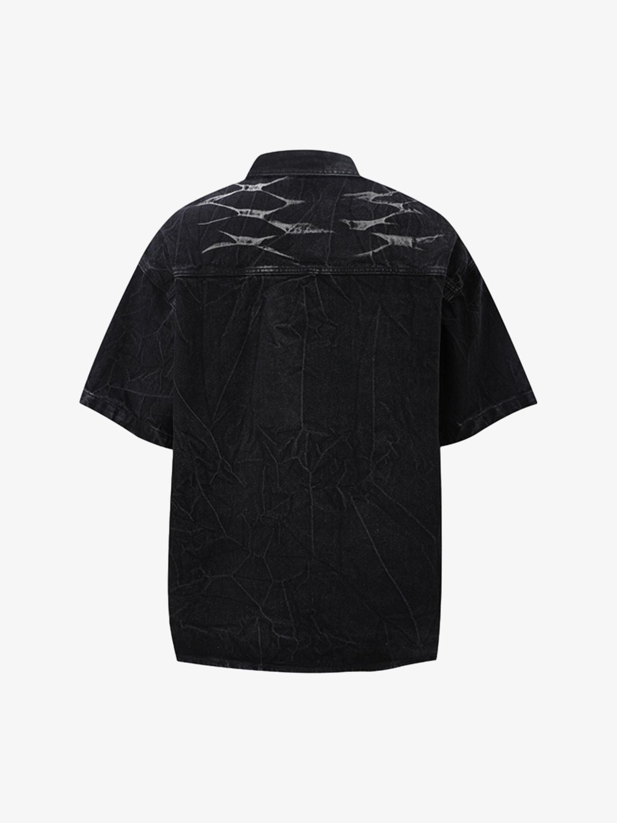 • Design Elements: Distressed patterns on both shirt and shorts, cargo pockets on shorts, button-down closure on shirt