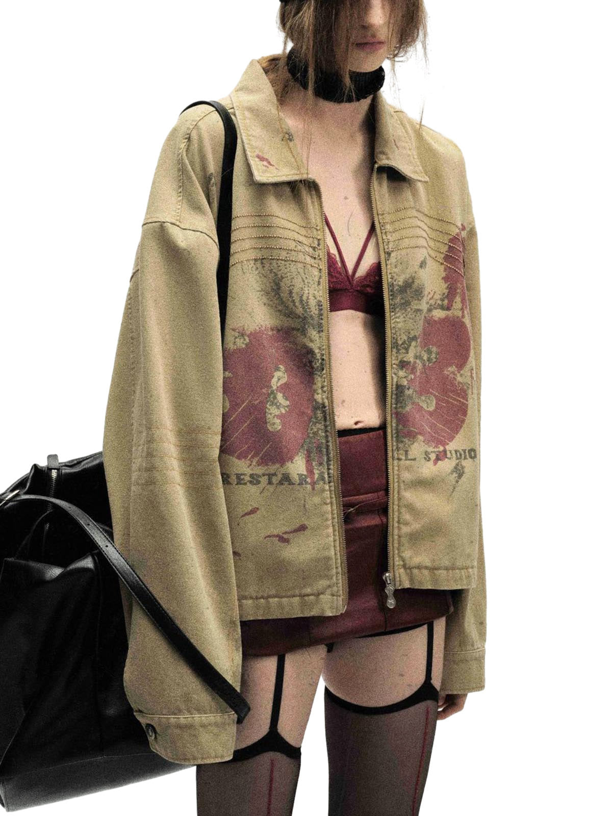 • Detail Features: Floral Embroidery, Front Zipper Closure, Ribbed Cuffs and Hem