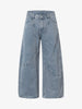 • Design Elements: Distressed details, wide-leg silhouette, high-rise waist